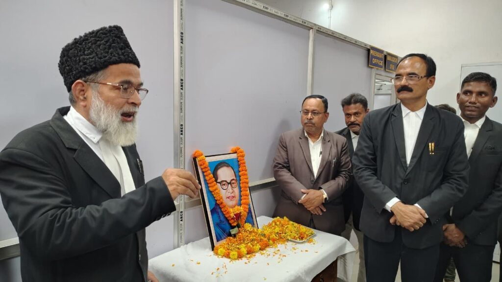 कार्यक्रम की अध्यक्षता संघ के कार्यकारिणी सदस्य महेश रजक ने की। इस अवसर पर उपस्थित सभी अधिवक्ताओं ने भारतीय संविधान के निर्माण में डॉ. अंबेडकर के अभूतपूर्व योगदान को याद किया और उनके संघर्षमय जीवन से प्रेरणा लेते हुए उनके विचारों पर चलने का संकल्प लिया। परिचर्चा के दौरान संघ के सदस्यों ने एकमत होकर मांग उठाई कि जिला अधिवक्ता संघ के परिसर में बाबा साहब डॉ. अंबेडकर की भव्य प्रतिमा स्थापित की जानी चाहिए।