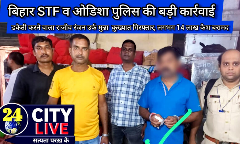 बिहार STF व ओडिशा पुलिस की बड़ी कार्रवाई, डकैती करने वाला राजीव रंजन उर्फ मुन्ना कुख्यात गिरफ्तार, लगभग 14 लाख कैश बरामद
