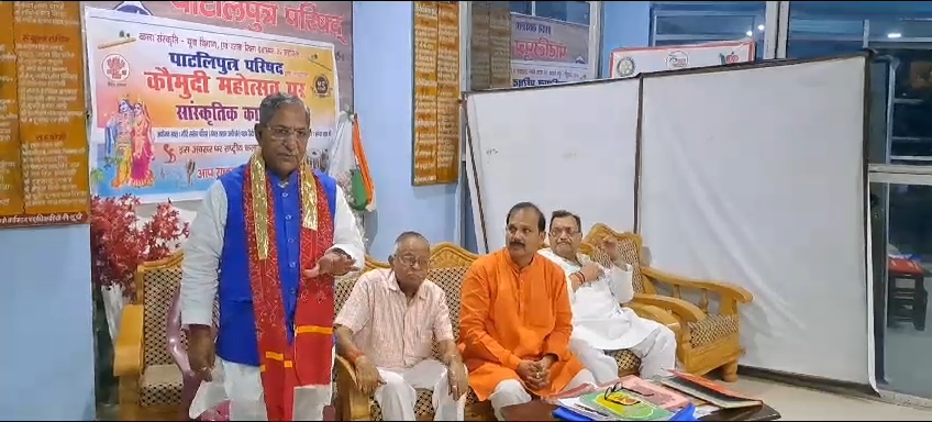 इस बावत गुरुवार को पाटलिपुत्र परिषद द्वारा आयोजित बैठक में महोत्सव के संदर्भ में परिषद के मुख्य संरक्षक सह विधायक नंदकिशोर यादव ने कहा कि ‘पाटलिपुत्र परिषद’ प्राचीन परंपरा का निर्वाह करते हुए कौमुदी महोत्सव की भव्यता व गरिमा को बनाये रखने के लिय अनवरत प्रयासरत है। इस विषय पर लेख-चित्रकला प्रतियोगिता का आयोजन निश्चित तौर पर युवाओं के लिए ज्ञानवर्द्धन है। महोत्सव में विभिन्न क्षेत्र से जुड़े नौ कलाकारों को कौमुदी रत्न से सम्मानित करना पाटलिपुत्र के लिए गौरव का विषय है। परिषद कला संस्कृति कार्य में उतरोत्तर विकास कर रही है।