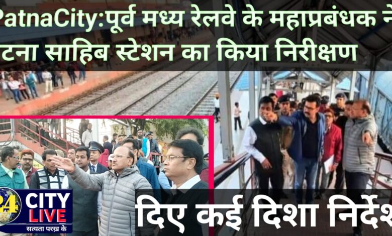 24CITYLIVE/आदर्श सिंह/पटना सिटी: पूर्व मध्य रेलवे के महाप्रबंधक अनिल कुमार खंडेलवाल ने रविवार की शाम पटना साहिब स्टेशन का औचक निरीक्षण किया। महाप्रबंधक ने पूरे स्टेशन परिसर का घूम-घूम कर यात्री सुविधाओं का जायजा लिया।